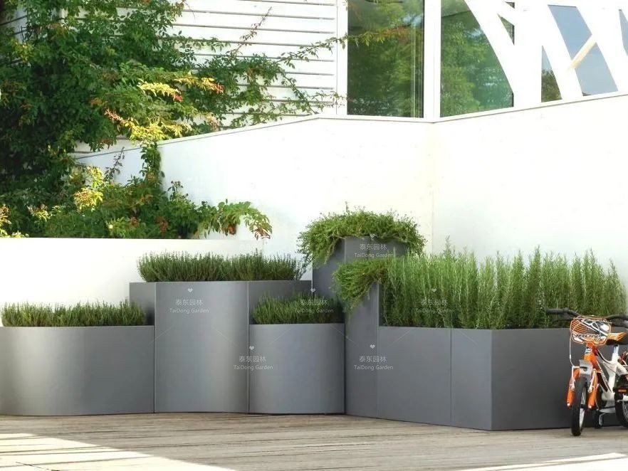 在商業(yè)、辦公、產(chǎn)業(yè)園、公共建筑等具有現(xiàn)代藝術(shù)氣質(zhì)的場(chǎng)景里,很多設(shè)計(jì)師選擇混凝土花缽、玻璃鋼花缽和金屬花缽。